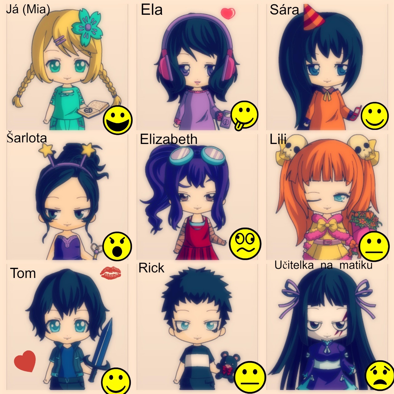 Příběhy budou o holce jménem Mia. Je jí 14 let,má dvě nejlepší kamarádky Elu a Sáru. Ale také tři nepřítelkyně co ji dělají neustálí problémy : Šarlota,Elizabeth a Lili. Lili byla celkem v pohodě,ale je na škole na škole nová a hned se skamarádila s něma... Mie se taky líbí kluk Tom... Ale bojí se mu to říct... Šarlota (to je ta její nepřítelkyně) má kluka Ricka. Rick je takový ten frajírek co si hraje na drsňáka. Na Miu není moc hodný kvůli Šarlotě. Šarlota je vůdkyně která navádí Elizabethu ,Lili a Ricka by dělali problémy Mie...